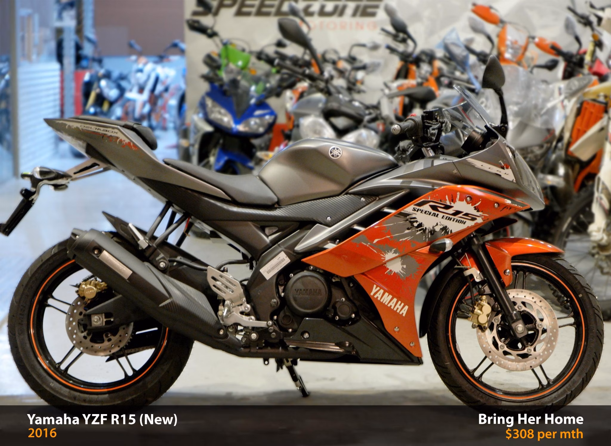 Looking for an adrenaline-pumping ride? Come check out the Yamaha YZF-R15 Special Edition Orange Non ABS 2016 at Speedzone showroom! This bad boy is sure to get your heart racing.